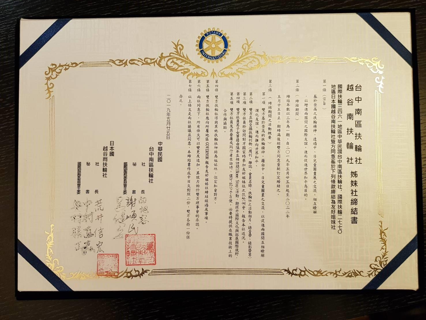 2018-19 日本越谷南姊妹社授證